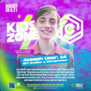 Miami NFT Week was an incredible experience for us! Adults were in awe that we could present well, market ourselves, speak in front of thousands, and hold our composure. It was the best experience! We were treated like VIP NFT Artists; we even saw Mark Cuban from Shark Tank that week. Plus, media from all over was there to interview my friends and us! We were even interviewed by the news and Fine Arts Auction Channel. We stayed in Miami for the week.